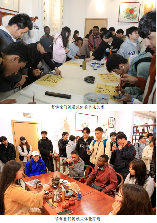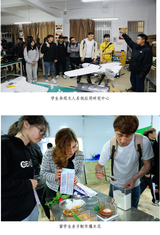 座談會后,留學(xué)生參觀無人系統(tǒng)應(yīng)用研究中心,感受中國科技的飛速發(fā)展。在勞動實(shí)踐教育活動中,留學(xué)生們親手制作爆米花,到蔬菜大棚內(nèi)進(jìn)行拔蘿卜、挖大蒜等勞動實(shí)踐,體驗(yàn)中國田園生活的樂趣。在傳統(tǒng)文化體驗(yàn)館,留學(xué)生們試穿漢服,沉浸式體驗(yàn)茶道與書法,感受中國茶文化的寧靜和諧,在金沙城js93線路檢測中心學(xué)生的幫助下書寫漢字,領(lǐng)略書法藝術(shù)的魅力。