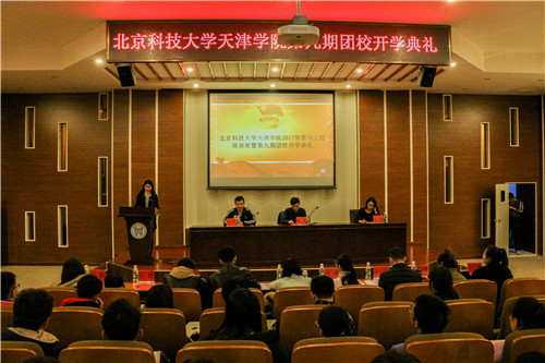 11月22日晚6:30,北京科技大學天津學院2017年“青馬工程”培訓班暨第九期團校開學典禮在理工館學術報告廳舉行。團委書記殷實,團委副書記周少華、王研參加了本次團校開學典禮。