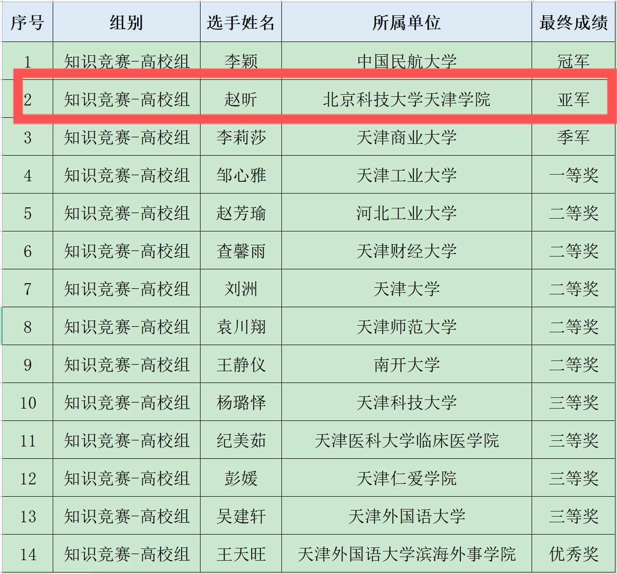 在知識(shí)競(jìng)賽環(huán)節(jié),參賽選手們?cè)谝?guī)定時(shí)間內(nèi)認(rèn)真審題,仔細(xì)書寫答案。經(jīng)過復(fù)賽的激烈角逐,趙昕同學(xué)以復(fù)賽小組第一名的成績(jī)成功晉級(jí)決賽。在緊張的決賽中,4名參賽選手全神貫注地應(yīng)答,趙昕更是表現(xiàn)沉穩(wěn)出眾,最終獲得高校組亞軍。