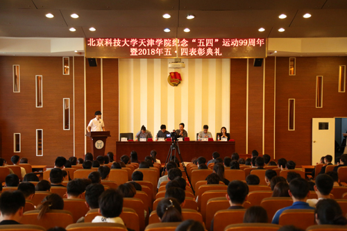 在五四青年節到來之際,習近平總書記于5月2日到北京大學考察并發表重要講話,對廣大青年提出了五點要求。為進一步學習領悟習近平總書記重要講話精神,繼承“五四”傳統,弘揚“五四”精神,表彰在團學工作中作出突出貢獻的先進集體和個人。2018年5月3,北京科技大學天津學院紀念五四運動九十九周年暨2018年五四表彰典禮在理工學術報告廳隆重舉行。北京科技大學天津學院黨委副書記葉振楠、學生處副處長田勇、團委書記殷實、團委副書記王研李洋以及各院系分團委書記各團學組織指導老師、各基層團組織負責人以及團員代表共200余人參加此次典禮團委副書記張添善主持典禮。