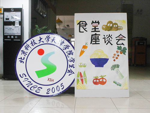 最后,食堂經理及工作人員和老師在橫幅上簽字并合影留念。食堂座談會最終圓滿結束。飲食是在校生活中很重要的一部分,后勤方面的有效監管、食堂方面積極的態度和學生方面有效的監督,讓我們看到一個優于以往的發展趨勢。食堂座談會不僅充分反映了同學們的意見及態度,同時也讓同學們更加理解食堂工作人員的工作。院學生會常代委員會將繼續探索新的工作方式,為后勤、食堂和學生之間做好樞紐工作,為學院創造更加和諧的校園就餐環境。