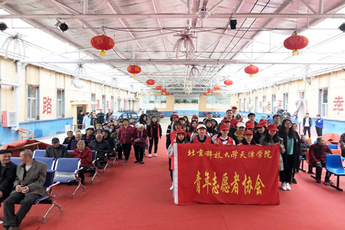 為貫徹習近平總書記在十九大報告中指出的要培育和踐行社會主義核心價值觀,提高當代大學生對社會的責任感和心系社會的意識,2019年4月27日下午,北京科技大學天津學院青年志愿者協(xié)會來到了寶坻區(qū)舒心敬老院,開展了一場關于關愛老人、孝敬老人的慰問活動,此次活動旨在讓青年志愿者們?yōu)槔先藗儙郏尷先藗兏惺艿綔嘏涂鞓贰?nbsp;