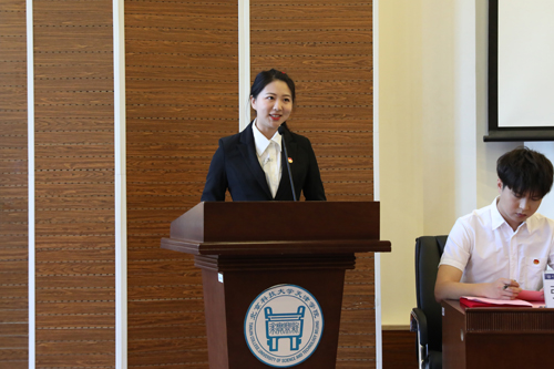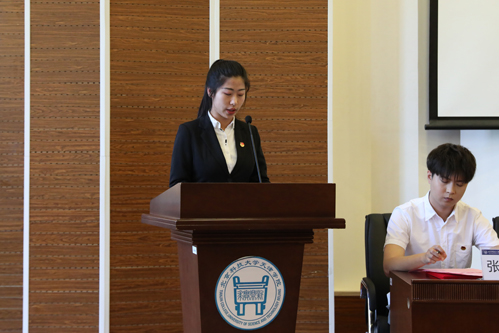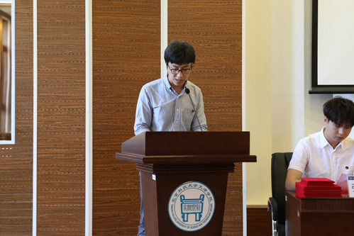 五四紅旗團(tuán)支部“管理學(xué)院財(cái)管1602團(tuán)支部”代表發(fā)言。該支部在團(tuán)工作建設(shè)的過程中,進(jìn)一步加強(qiáng)了團(tuán)支部的制度建設(shè),增強(qiáng)了團(tuán)工作的規(guī)范性,提高黨團(tuán)員青年的思想素質(zhì)與政策理論水平;建立互助小組,互相幫助,互相鼓勵(lì)。為其他團(tuán)支部起到了模范帶頭作用。
