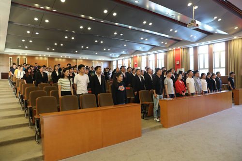 大會(huì)伊始,全體師生起立,奏唱國(guó)歌。
