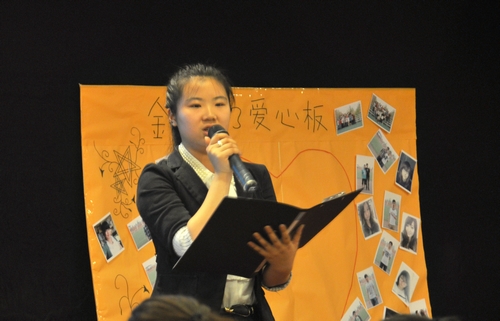 一段簡(jiǎn)單的開(kāi)場(chǎng)之后,孝心社張永康同學(xué)首先與大家分享了他對(duì)孝的理解。 “孝心,并非是長(zhǎng)大后才有的責(zé)任,也并非是用金錢(qián)就能彌補(bǔ)”、“孝心其實(shí)很簡(jiǎn)單,比如,為家里清掃一次房間;為母親倒一杯水;為父親捶一次背……”樸實(shí)的話(huà)語(yǔ)道出了他對(duì)孝的點(diǎn)滴體會(huì)。金融1103班班同學(xué)自己拍攝并制作的視頻記錄了他們對(duì)父母想說(shuō)的話(huà)。孝心社劉曉通過(guò)自己的親身經(jīng)歷告訴了大家“行孝不能等”這個(gè)道理,很多同學(xué)聽(tīng)完之后都默默的擦起了眼淚。李翔同學(xué)演唱的《父親》也深深的打動(dòng)了大家。部分同學(xué)的父母用電話(huà)錄音的方式表達(dá)了他們對(duì)于在遠(yuǎn)方求學(xué)的同學(xué)們的掛念和祝福。全班同學(xué)和著鋼琴伴奏共同演唱了《燭光里的媽媽》,歌聲傳遞了同學(xué)們對(duì)爸爸媽媽的祝福。活動(dòng)最后,同學(xué)們將自己對(duì)爸爸媽媽想要說(shuō)的話(huà)寫(xiě)在留言板上,一句句簡(jiǎn)單的話(huà)表達(dá)了對(duì)父母真摯的愛(ài)。