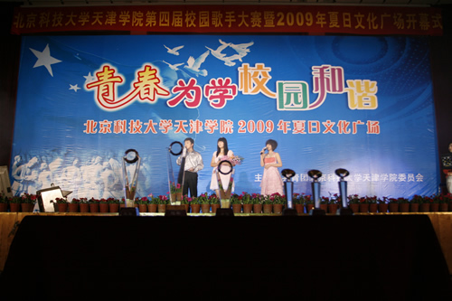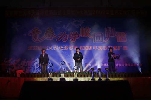 4月15日晚,第四屆校園歌手大賽暨2009年夏日文化廣場開幕式在體育館隆重舉行,本次比賽由共青團北京科技大學(xué)天津?qū)W院委員會主辦、學(xué)生會承辦。黨委書記王斌、副院長曹連東、財務(wù)總監(jiān)肖祖剛、學(xué)院辦公室主任白亮、學(xué)生處處長盛佳偉、團委書記葉振楠及各系黨總支書記出席開幕式并觀看了比賽。