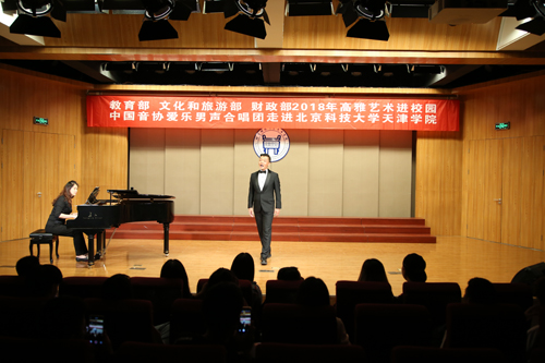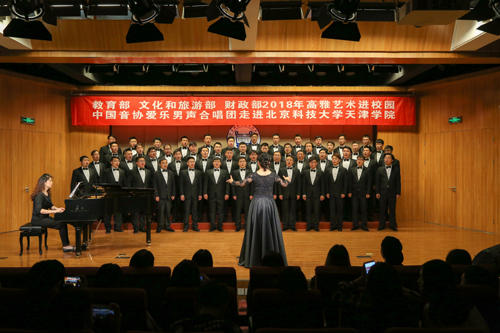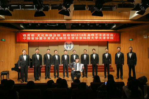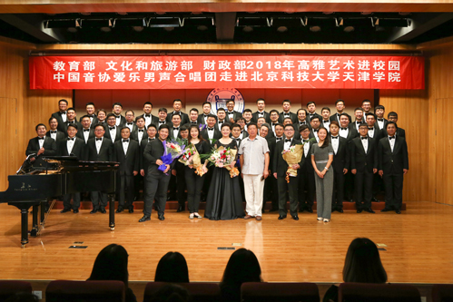 為認(rèn)真學(xué)習(xí)貫徹黨的十九大精神,進(jìn)一步落實(shí)《教育部辦公廳 文化和旅游部辦公廳 財(cái)政部辦公廳關(guān)于開展2018年高雅藝術(shù)進(jìn)校園活動(dòng)的通知》,9月17日18:30“教育部 文化和旅游部 財(cái)政部 2018 年高雅藝術(shù)進(jìn)校園——中國(guó)音協(xié)愛樂男聲合唱團(tuán)走進(jìn)北京科技大學(xué)天津?qū)W院”音樂會(huì)在金沙城js93線路檢測(cè)中心弘藝音樂廳精彩上演。教務(wù)處長(zhǎng)張建華、招生就業(yè)處長(zhǎng)柯瑜、藝術(shù)系副主任林碧蕓等與百余名師生共同觀看了演出。
