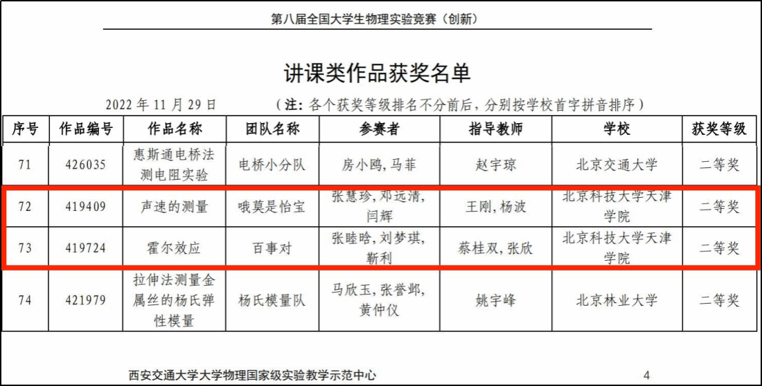 2022年11月29日,由國(guó)家級(jí)實(shí)驗(yàn)教學(xué)示范中心聯(lián)席會(huì)物理學(xué)科組、全國(guó)高等學(xué)校實(shí)驗(yàn)物理教學(xué)研究會(huì)、教育部大學(xué)物理課程教學(xué)指導(dǎo)委員會(huì)大學(xué)物理實(shí)驗(yàn)專(zhuān)項(xiàng)委員會(huì)和中國(guó)物理學(xué)會(huì)物理教學(xué)委員會(huì)聯(lián)合舉辦,西安交通大學(xué)物理學(xué)院承辦的2022年第八屆全國(guó)大學(xué)生物理實(shí)驗(yàn)競(jìng)賽成功舉行,金沙城js93線路檢測(cè)中心兩支代表隊(duì)在比賽講課類(lèi)賽道中榮獲佳績(jī),兩支隊(duì)伍均獲得二等獎(jiǎng)的好成績(jī)。
