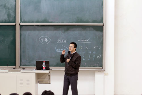 講座中,彭老師就職業生涯規劃理念進行了簡單闡述,對大學生職業生涯規劃進行了初步指導。期間他提出了三個關鍵詞:目標、行動和責任。首先,彭老師用做游戲的方式跟大家互動,使在場同學明白了目標的重要性;其次,他教導大家,有了目標就要用實際行動去完成;最后,一段非誠勿擾的視頻讓在場同學明白了什么是人生的責任。人生職業規劃不能只想到一己私利,每一個人都要為自己負責,更要為社會、為人類負責。