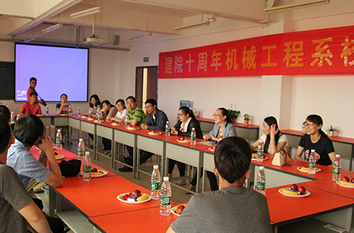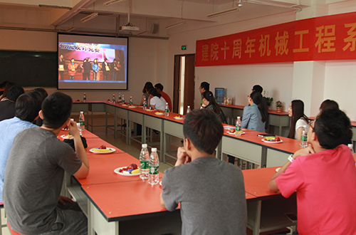 參觀過后我系在12教4層多媒體教室一同開展了主題為“建院十周年機械工程系校友座談會”,會上校友代表紛紛發言,訴說著離校后的人生經歷,并將他們的人生經驗和處世之道傳授給后輩,將“不甘于后”的精神發揚光大。之后觀看了機械系十年來一同走過的時光短片。他們勸誡年輕學子“珍惜當下、包容萬物、學會感恩”,要把每一個能把握的機會轉化為未來成功的籌碼,并表達了對母校深深地祝福。