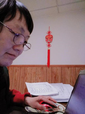 因疫情影響,李徽老師身在加拿大無法返回國內。由于時差12小時的原因,李老師的上課時間都在加拿大時間的深夜甚至凌晨。這對一個年過60歲的教師來說是件并不是件容易的事。為了不打擾家人晚上休息,同時保障上課質量,李老師將電腦和教學需要的所有資料全部搬到家中的地下室,以便夜深時在地下室里為學生們授課。地下室的溫度較低,李老師也不得不在每次授課時都穿上了厚厚的棉衣。