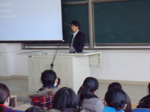 之二:學生座談會。11月3日下午,外語系在9教109召開05-07級全體學生座談會,外語系主任梁素琴、秘書及各級輔導員和任課教師代表出席此次活動。此次座談會特約北京科技大學外國語學院院長張敬源教授出席,給外語系的學生進行了一次生動而有意義的演講。張教授就目前學生在學習外語過程中出現的困惑進行了深入分析,通過例證,找出其中原因,最終找到解決問題的方法。學生認真聽了此次演講,更堅定了學習外語的信心,受益頗深。會后,學生代表就目前在學習中遇到的困難和今后的規劃咨詢了梁主任和張院長,他們都一一作出回答,學生也十分滿意。