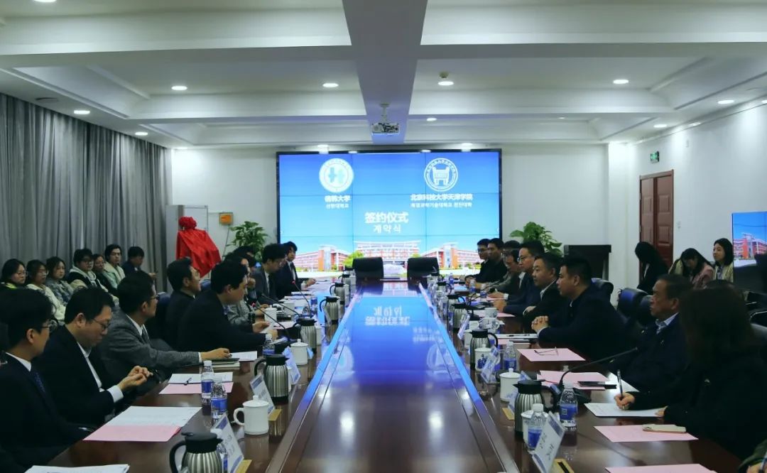 12月4日上午,韓國東明大學與北京科技大學天津學院合作簽約儀式在理工館舉行。韓國東明大學副校長權重洛...