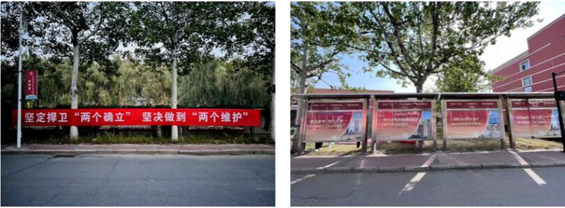 學(xué)院通過(guò)條幅、電子屏、櫥窗、幕布等宣傳黨的二十大精神