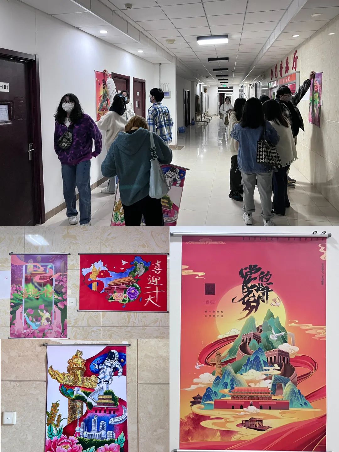 藝術(shù)學(xué)院學(xué)生第一黨支部開(kāi)展“喜迎二十大,追夢(mèng)正當(dāng)時(shí)”主題黨日活動(dòng),布置藝術(shù)學(xué)院黨建文化墻,裝裱黨支部成員手繪、板繪、海報(bào)等喜迎二十大主題作品