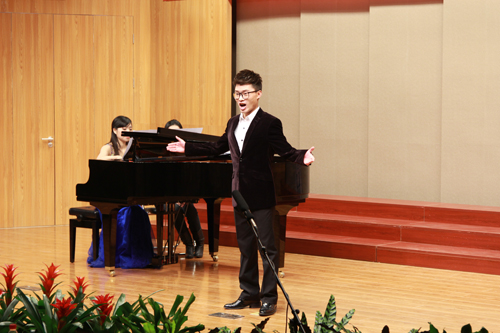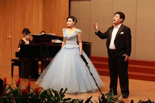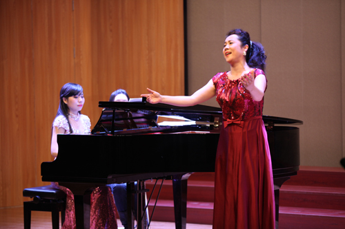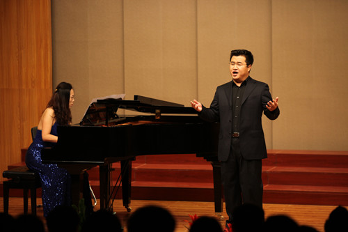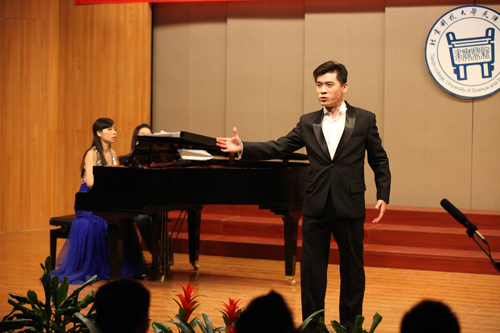 本次匯演特別邀請到中國著名男低音歌唱家、中央音樂學院教授、碩士研究生導師、中國音樂家協會會員彭康亮以及著名女高音歌唱家、中國歌劇舞劇院著名演員、中國音樂家協會會員王燕為觀眾獻唱。彭教授帶來的《三套車》和《鳳陽花鼓》低音深沉圓潤、悠揚穿透、像天鵝絨般柔軟而富有彈性,感染了在場所有觀眾;王燕教授則用她富有張力的舞臺表演及婉轉高亢的女高音完美演繹了歌曲《帕米爾我的家鄉多么美》和《美妙歌聲隨風飄蕩》,使現場完全沸騰。展演在熱情洋溢、膾炙人口的四重唱與大合唱《飲酒歌》中圓滿落下帷幕。