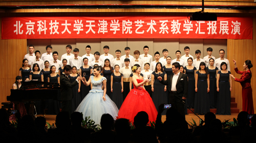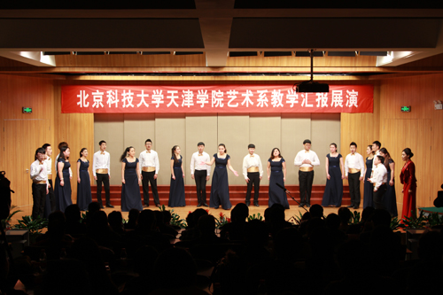 2015年1月10日,北京科技大學天津學院弘藝音樂廳座無虛席,掌聲雷動,由藝術系主辦的“北京科技大學天津學院藝術系教學匯報展演”在此拉開帷幕。香港科技大學創校校長吳家瑋,珠江集團董事、珠江教育集團董事長王爭放,珠江集團京津新城投資公司董事長張振國,北京科技大學黨委副書記張文明,中山大學南方學院院長、黨委書記喻世友,天津財經大學珠江學院院長高正平及參加第五屆珠江教育年會的與會人員觀看了本次演出。北京科技大學天津學院院長郭景文、黨委書記王斌陪同觀看。