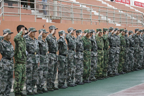 軍訓科目匯報表演:單兵隊列動作示范表演