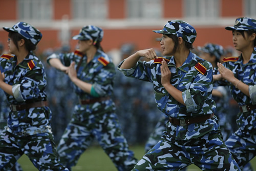 軍訓科目匯報表演:女兵方陣軍體拳表演