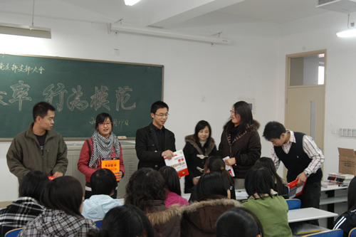 11月19日,經濟系金融工程專業學生第一黨支部在8教205舉行了“學習表率,行為模范”支部強化學風系列活動之贈書儀式,支部黨員共55人參加會議。