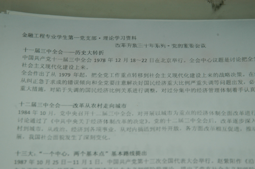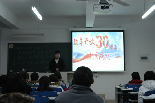 12月16日晚,經濟系金融工程專業學生第一黨支部在8教305舉行了“見證歷史,展望未來,為改革開放三十周年獻禮”主題黨日活動。支部學生黨員、入黨積極分子共45人參加了這次活動。