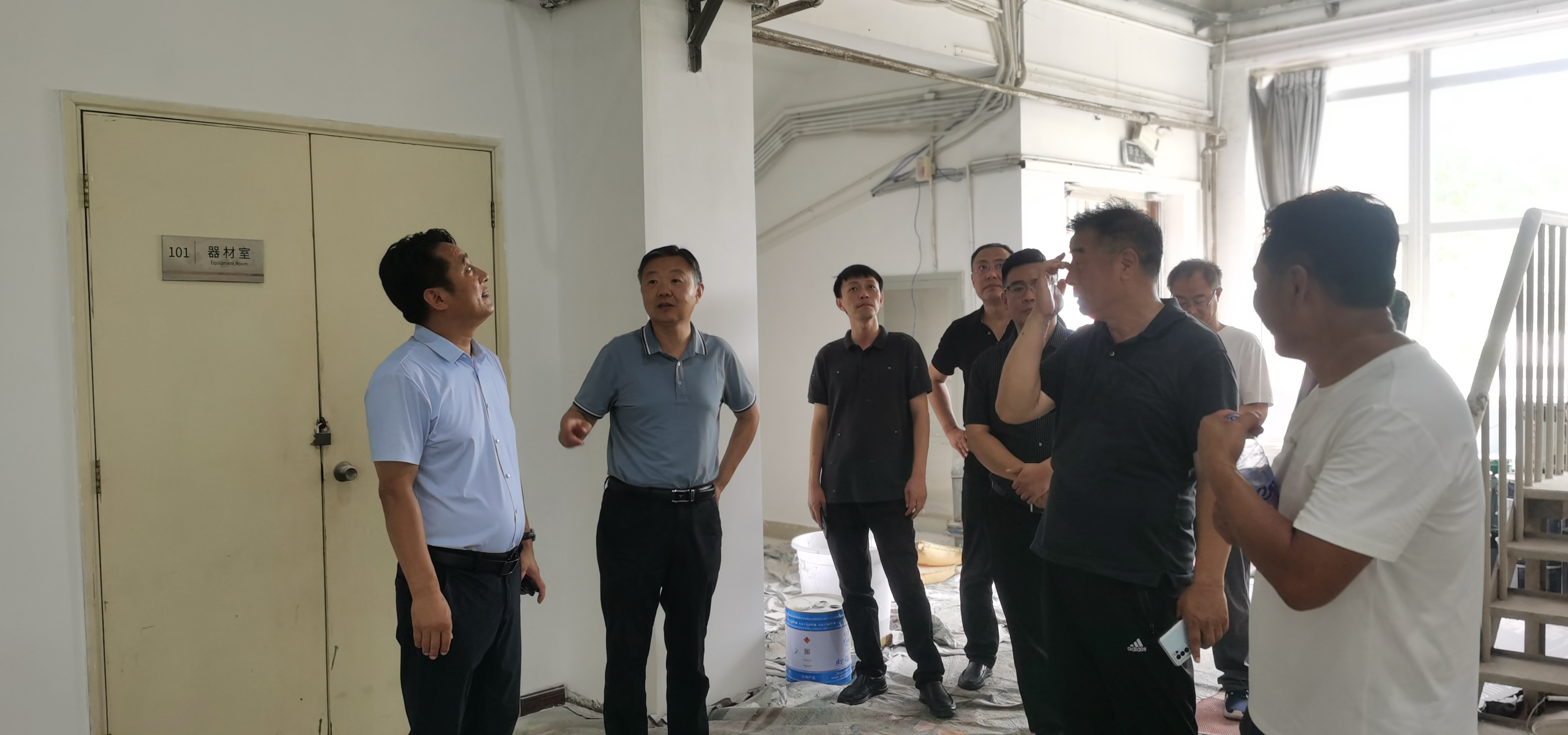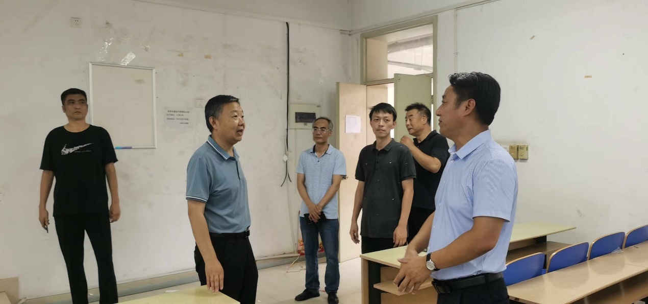 院長丁煦生、副院長張永鋒一行在相關部門的陪同下,到教學樓、宿舍樓、體育館等施工現場,詳細了解教學保障提升改造、體育館翻新及新生宿舍樓改造等項目的具體安排、進展情況以及遇到的困難和挑戰。丁院長認真聽取了匯報,充分肯定暑期校園提升改造工作,對大家在高溫酷暑下依然堅守崗位、默默奉獻的精神給予高度評價。