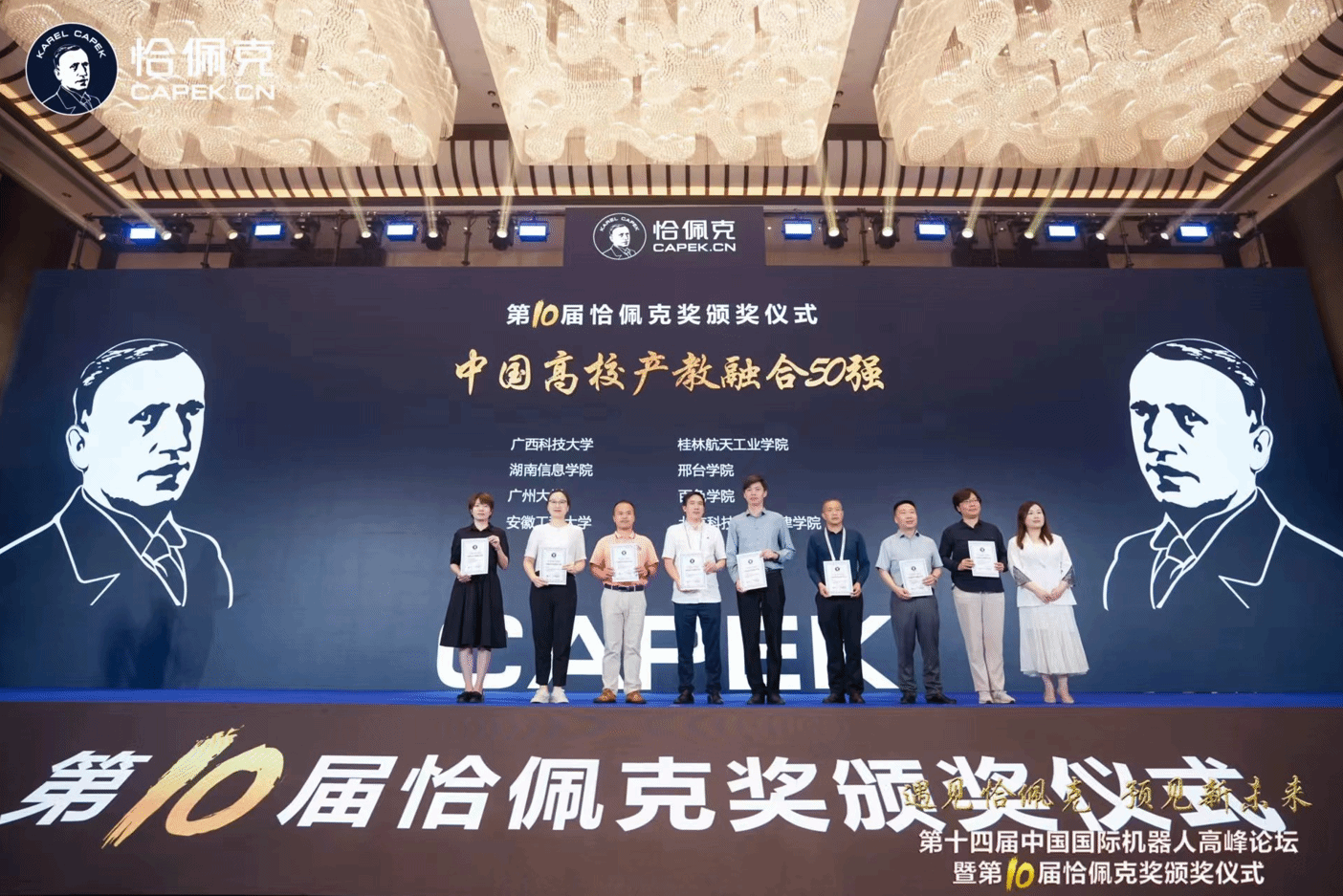 恰佩克獎(The Capek Prize)創立于2014年,旨在獎勵在機器人領域作出貢獻的組織和個人,致力于做機器人行業發展的見證者,打造機器人行業的“諾貝爾”。目前,恰佩克獎是我國機器人領域內最重要、含金量最高的獎項,在行業內極富影響力和公信力?!爸袊咝.a教融合50強”是恰佩克獎為在機器人行業作出重要貢獻的高校組織設立的獎項。第十屆恰佩克獎活動將延續“遇見恰佩克·預見新未來”這一主題,匯聚機器人全產業鏈知名企業,共同圍繞全球機器人行業前沿熱點、核心技術、創新應用、商業模式,以及國家機器人行業發展的熱點話題進行重點探討,剖析行業發展趨勢,獻策機器人產業發展瓶頸,推動我國機器人行業快速、健康發展。