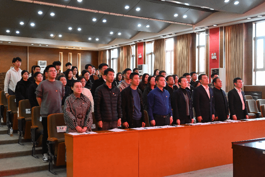 大會在莊嚴的《國歌》聲中拉開了序幕。張飛鵬代表材料與環(huán)境學院總支委員會向大會做了工作匯報,全面總結了三年來黨總支在黨建和思想政治工作、學科專業(yè)建設等方面的情況,并對材料與環(huán)境學院未來三年發(fā)展提出展望。