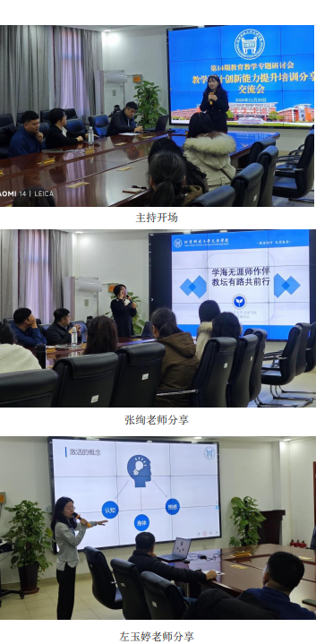 在隨后的交流研討環(huán)節(jié),管理學(xué)院的邵帥老師與信息學(xué)院的趙成老師受邀上臺(tái),分享了他們的心得體會(huì)及遇到的困惑。高老師還根據(jù)與會(huì)教師會(huì)前提交的收獲進(jìn)行了總結(jié)分享,她指出,參加培訓(xùn)的教師普遍認(rèn)同“把課堂還給學(xué)生”的理念,這要求我們不斷更新教學(xué)理念,研究教育教學(xué),提升教學(xué)能力,構(gòu)建師生共同體,實(shí)現(xiàn)同學(xué)、同研、同講、同行的目標(biāo)。