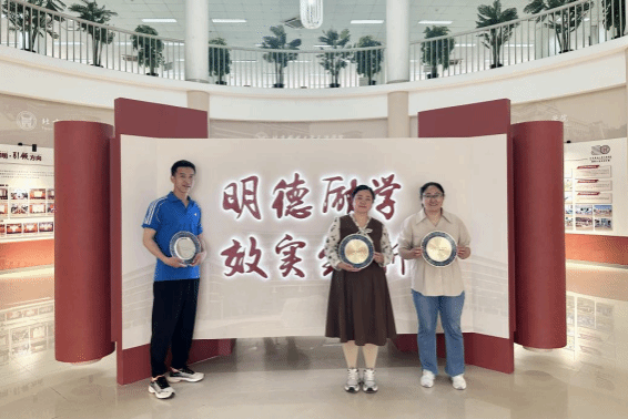 會后,學(xué)院在社科圖書館為全體獲獎教師頒發(fā)獎盤。獲獎教師們難掩喜悅,紛紛手捧榮光,參觀20周年校史展覽并與之合影留念。