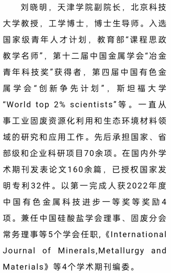 近日,2025年冶金科學(xué)技術(shù)獎(jiǎng)授獎(jiǎng)公告正式發(fā)布,天津?qū)W院副院長、北京科技大學(xué)劉曉明教授團(tuán)隊(duì)的科研成果《電解錳渣中氨氮循環(huán)及多固廢全組分協(xié)同利用研究與應(yīng)用》喜獲一等獎(jiǎng)!