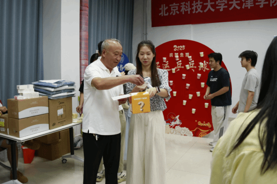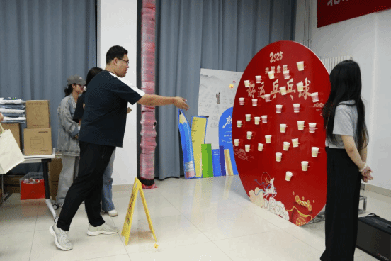 現場工會精心準備了“好運乒乓球”小游戲,游戲中老師們互相指導技巧,收獲滿滿。當天生日的老師為大家抽獎,中獎教師驚喜歡呼舉手示意,拿到“秋日暖心禮”。英文猜歌詞游戲大家踴躍報名,團隊緊密合作,觀眾為每支隊伍加油鼓勁,現場歡樂氛圍拉滿。