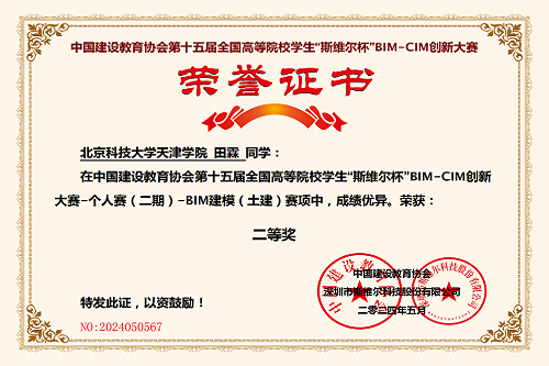 近日,由中國建設(shè)教育協(xié)會主辦、深圳市斯維爾科技股份有限公司承辦的第十五屆全國高等院校學(xué)生“斯維爾杯”BIM-CIM創(chuàng)新大賽第二期競賽傳來喜報。城市建設(shè)學(xué)院學(xué)生在本期競賽中榮獲二等獎5項、三等獎10項。