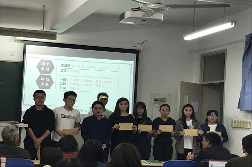 該活動(dòng)由“固體廢物資源化黨支部”書記王曉娜博士主持。活動(dòng)的第一個(gè)環(huán)節(jié),是對(duì)環(huán)境工程系上學(xué)期具有突出表現(xiàn)的同學(xué)進(jìn)行表彰,院長(zhǎng)劉勝富教授、系主任汪群慧教授、輔導(dǎo)員王鑫輔老師分別為學(xué)習(xí)成績(jī)優(yōu)異、班級(jí)貢獻(xiàn)突出、英語學(xué)習(xí)勤奮的同學(xué)頒發(fā)了獎(jiǎng)品,對(duì)在各方面起到模范帶頭作用的同學(xué)進(jìn)行了表揚(yáng)與肯定,希望他們?cè)俳釉賲枺蚕M渌瑢W(xué)向之學(xué)習(xí)。