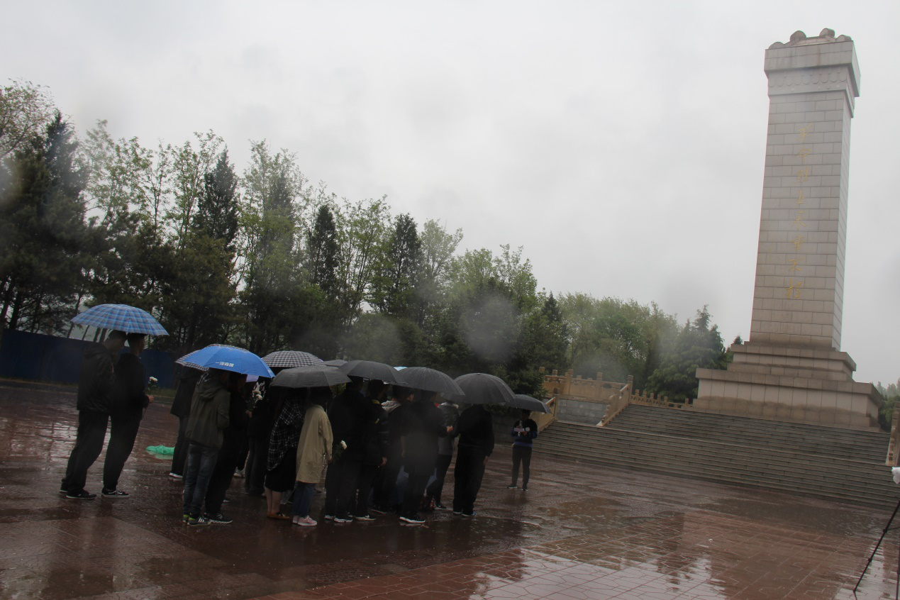 團支部成員抵達寶坻烈士陵園下車后,佩戴白紙花,集體進入陵園。團支書馬茜主持了本次活動,首先由程哲峰同學介紹了天津市烈士陵園背景及其革命故事,齊唱國歌后,優秀團員代表佀泉董同學以“奮勇投身新時代,接力建功中國夢”為題目進行了演講,表示新時代的青年應繼承和弘揚五四精神、爭做擔當民族復興大任的時代新人。隨后,陳繼亮同學帶領團支部成員重溫了入團誓詞,輔導員張軍老師向青年團員寄語,張老師希望大家能在緊張的學習之余,能夠靜下心來,審視自己的人生旅途,選擇自己的信仰和志向。然后,團支部成員齊唱團歌,團員代表饒恒宇和陳俊龍同學敬獻花籃,其余團員瞻仰革命英雄紀念碑并敬獻鮮花;敬獻畢,全體團員默哀致敬一分鐘。最后,大家分組自由活動進行參觀瞻仰,并且在互動展示中表達了自己對本次主題團日活動的感悟。
