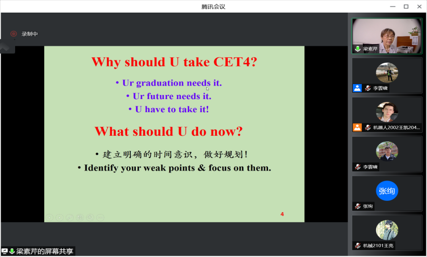 陳院長首先感謝梁素芹教授為金沙城js93線路檢測中心及全校學生做四六級培訓講座,感謝梁教授對智能制造學院活動的大力支持,同時傳達了教務處舒敬榮處長對本次活動的祝賀和對梁教授的感謝。陳院長在講話中指出,金沙城js93線路檢測中心全面貫徹落實學院有關精神,重抓學風建設,培養創新人才,強調了英語在學習中的重要性,以及通過四六級的重要意義,要求全院同學以此次動員培訓會為契機,努力學習,實現英語成績突破。