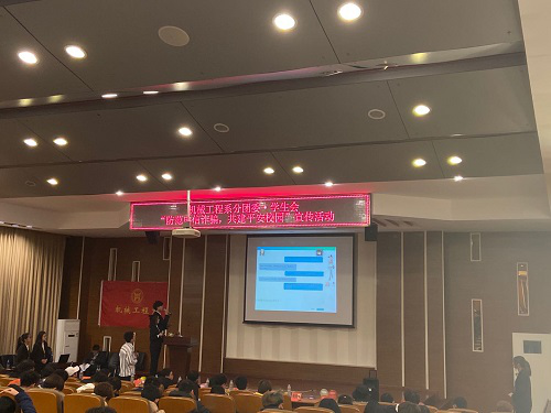 為維護(hù)我們安靜的學(xué)習(xí)環(huán)境,提高防范意識,使同學(xué)們在平時的生活中遠(yuǎn)離詐騙分子,圓滿的完成自己的學(xué)業(yè),機械工程系于12月1日下午5點在理工圖書館學(xué)術(shù)報告廳舉辦了以“防范電信詐騙,共建平安校園”的情景劇活動。此次活動到場的有機械工程系分團(tuán)委書記張軍老師、材料系19級輔導(dǎo)員韓子玉老師以及機械系分團(tuán)委、學(xué)生會主席團(tuán)和部長團(tuán)成員。