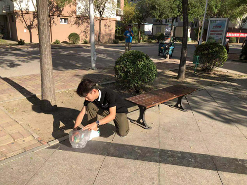 為了提高撿垃圾的效率,成員分為兩組。一組負(fù)責(zé)社區(qū)街道,一組負(fù)責(zé)社區(qū)草坪。由于人們的環(huán)保意識已經(jīng)得到了顯著的提高,街道和草坪都相當(dāng)干凈整潔。但是通過成員們仔細(xì)的觀察還是發(fā)現(xiàn)了街道邊緣的煙頭,以及草叢下的瓶蓋等垃圾并把它們一一撿入袋中。經(jīng)過了成員們一個(gè)多小時(shí)的努力終于撿完了負(fù)責(zé)區(qū)域內(nèi)的垃圾,望著滿滿兩大袋垃圾,成就感不由得涌了上來。當(dāng)然這些垃圾也不能隨便丟入垃圾桶,成員們帶著垃圾到了專門的垃圾分類的垃圾桶邊對他們進(jìn)行一一分類,在最后把空空如也的垃圾袋丟入“干垃圾”的垃圾桶后,此次實(shí)踐活動正式結(jié)束。