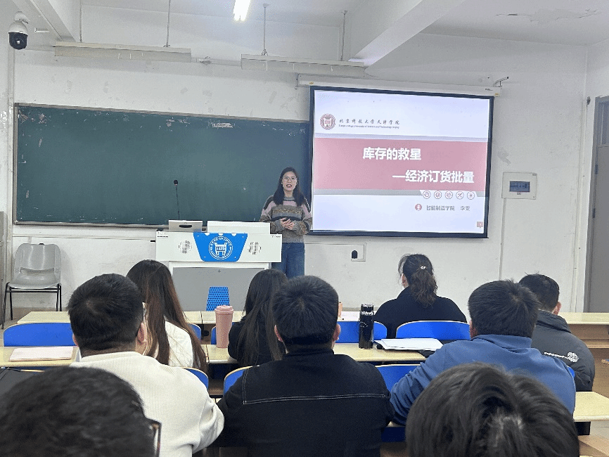 李雯老師以“庫存的救星——經濟訂貨批量”為主題,通過一系列生動的案例和嚴謹的數據分析,深入淺出地闡述了經濟訂貨批量在庫存管理中的關鍵作用。課程伊始,她以一個真實的生產案例作為切入點,提出了“如何以最低的成本管理庫存”的挑戰性問題,成功激發了學生的興趣。在講授過程中,李老師通過清晰的邏輯推演,逐步剖析了經濟訂貨批量的理論基礎,并結合圖表與公式進行詳細講解,使得深奧的理論知識變得直觀易懂。