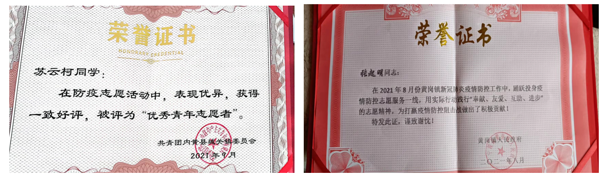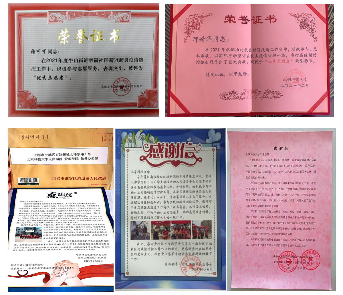 邵俊茹、張可可、蘇云柯、張起明、范伊靜、李瀅欣、邢婧華、王雙慧、黃晨琳,一個(gè)個(gè)名字躍然出現(xiàn)在各種感謝信和志愿者證書上,這些“功勛章”不僅深切體現(xiàn)了他們的優(yōu)良品質(zhì)和擔(dān)當(dāng)作為的精神風(fēng)貌,更蘊(yùn)含著他們背后的默默付出和詮釋青年學(xué)子責(zé)任與使命的實(shí)際行動(dòng)。交通卡口執(zhí)勤、核酸檢測登記、防疫知識(shí)宣傳、消殺重點(diǎn)場所、入戶排查實(shí)名登記、為居家隔離人員上門服務(wù),他們?cè)谘籽紫娜眨晃房崾睿y而上,積極投入抗疫一線工作,主動(dòng)承擔(dān)起防疫工作中“守門員”、“宣傳員”、“戰(zhàn)斗員”、“保障員”的角色,盡自己所能共同筑起阻擊新冠疫情的重要防線。