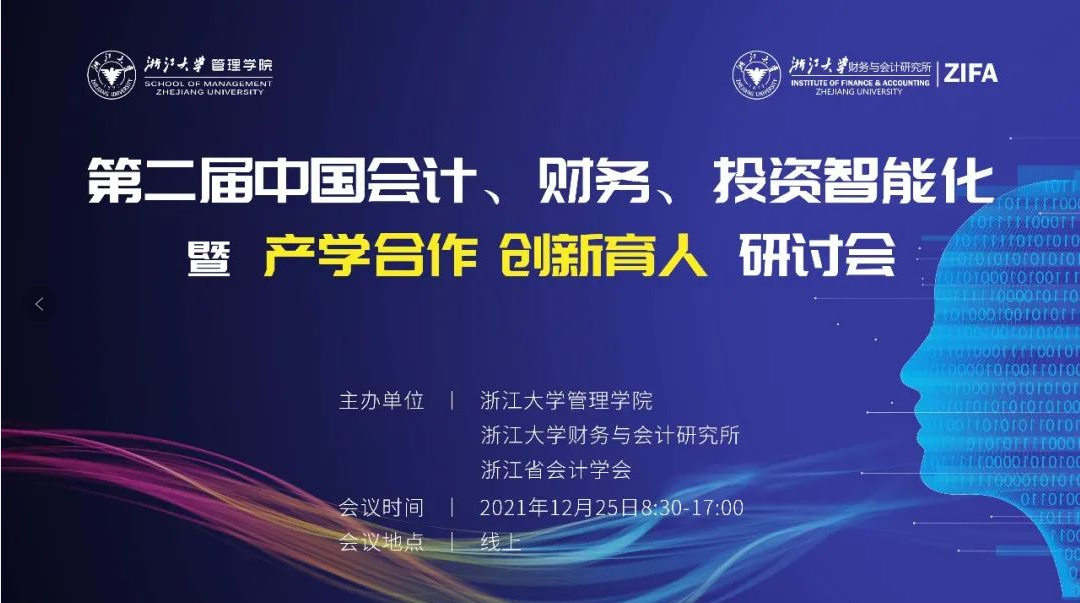 當前,人工智能、大數據、云計算、區塊鏈等信息技術的發展日新月異,已經深刻地影響了商業實踐創新和新商科的建設與發展。會計、財務、投資智能化領域快速的實踐創新和對智能財會人才的迫切需求,已經引起了中國財務和會計學界的高度關注。2021年12月25日上午8:30到下午17:00,由浙江大學管理學院、浙江大學財務與會計研究所、浙江省會計學會聯合主辦的第二屆中國會計、財務、投資智能化暨產學合作創新育人研討會在線上舉行。高校知名專家學者、業界精英共聚云端。是一次不可多得的學習機會。