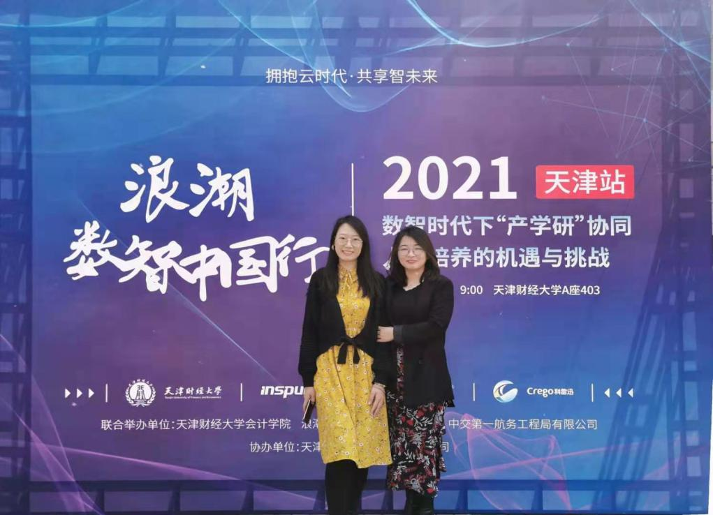 2021年4月8日,管理學院邵帥和張媛兩位老師參加了在天津財經大學舉辦由天津財經大學、中交第一航務工程局有限公司(以下簡稱中交一航)、浪潮鑄遠教育科技有限公司(以下簡稱浪潮鑄遠)聯合主辦的數智時代下“產學研”協同育人培養的機遇與挑戰高峰論壇。