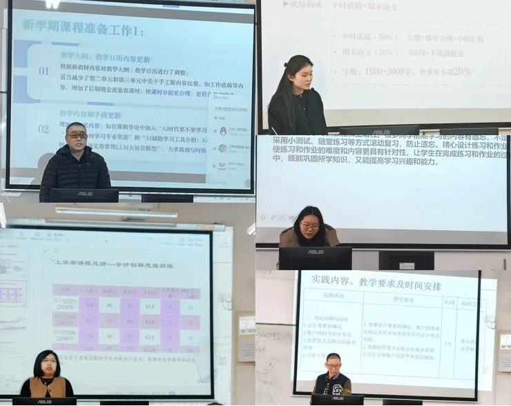 教師說課開始前,王曉欣老師就開展教師說課活動的重要意義以及本次說課的活動安排進(jìn)行簡要介紹。隨后,教師們按照課程團(tuán)隊安排依次介紹上學(xué)期課程總結(jié)及新學(xué)期課程設(shè)計等內(nèi)容。
