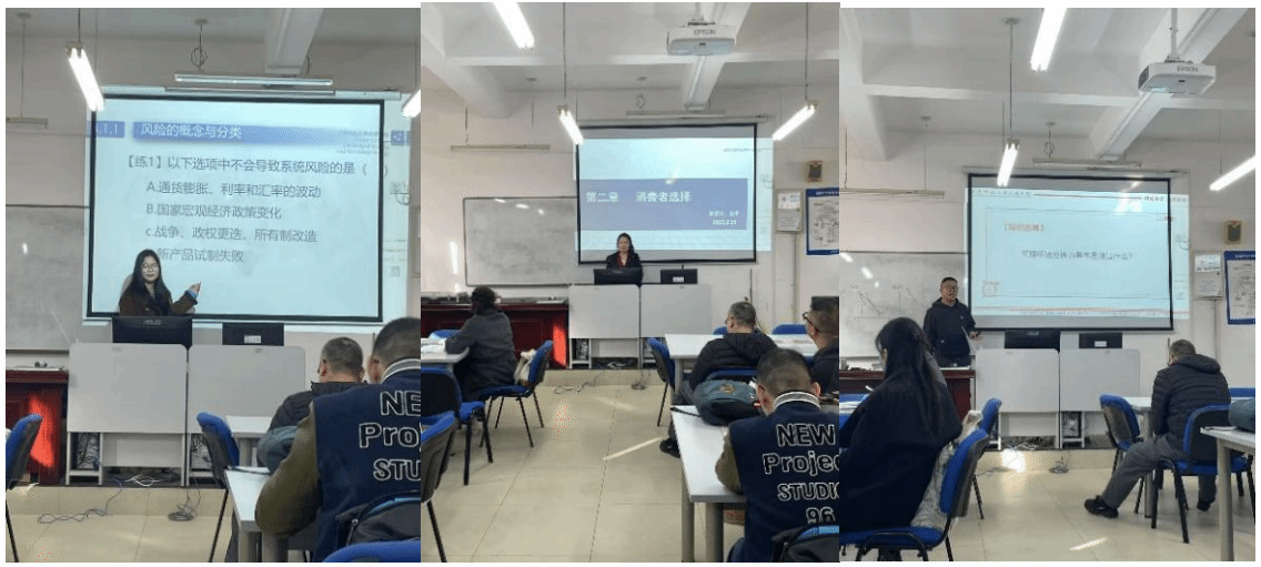 本次試講中,郭千穎、王卓、黃昊三位新教師聚焦專業(yè)前沿,立足學(xué)科特點(diǎn),結(jié)合理論與實(shí)踐展開生動(dòng)講授。郭千穎老師以《財(cái)務(wù)管理》課程,系統(tǒng)梳理了個(gè)別投資及投資組合收益與風(fēng)險(xiǎn)的識別標(biāo)準(zhǔn)與分類框架,分析多角化投資對分散企業(yè)風(fēng)險(xiǎn)的意義;王卓老師在《微觀經(jīng)濟(jì)學(xué)》課程中,通過生活化場景模擬引導(dǎo)學(xué)生理解消費(fèi)者選擇理論中的偏好選擇,結(jié)合數(shù)學(xué)推導(dǎo)與圖形解析,深入淺出地闡釋無差異曲線的基本假設(shè)和特征;黃昊老師則以《人力資源管理》課程,運(yùn)用PEST分析法剖析宏觀環(huán)境對人力資源戰(zhàn)略的影響。各位老師教學(xué)展示各具特色,體現(xiàn)了自己的專業(yè)素質(zhì)和課堂教學(xué)能力。