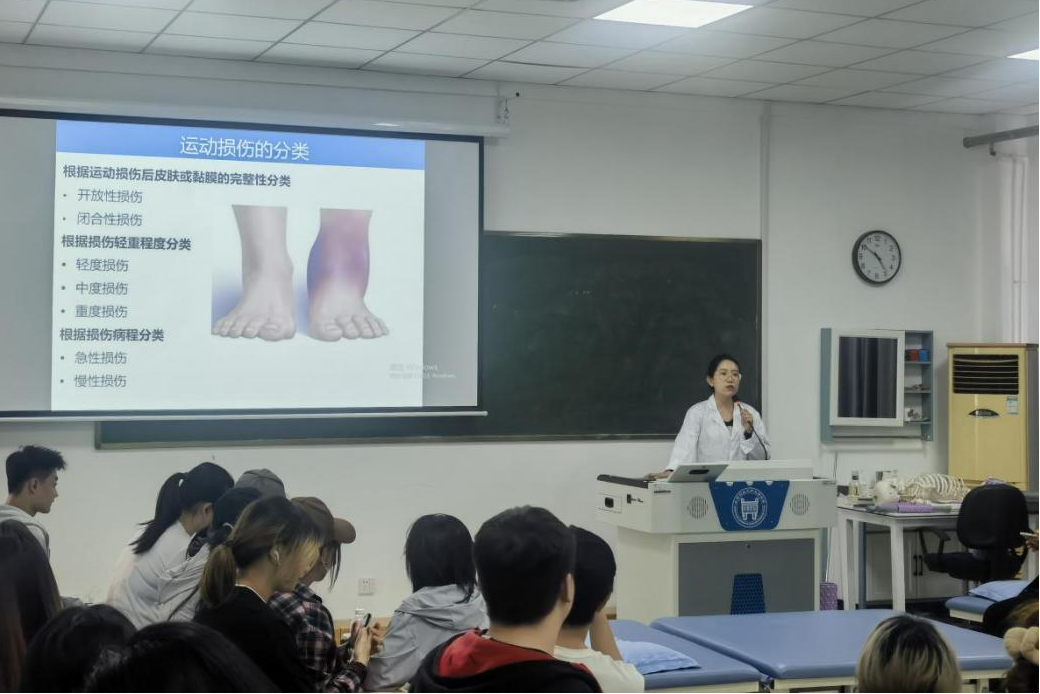 4月16日,大健康學院康復治療系《運動療法技術學》主講教師張怡暉為康復22級全體學生開展理論教學和實操演練,通過有計劃、有組織的運動損傷(賽前熱身、賽后拉伸)相關的理論教學和實操演練,為助力校運會和學生今后工作奠定良好的理論和實踐基礎。實操演練結束后并對所有學生進行肌肉牽伸技術考核,擇優選擇11名同學代表康復治療系開展校運會志愿服務實踐活動。