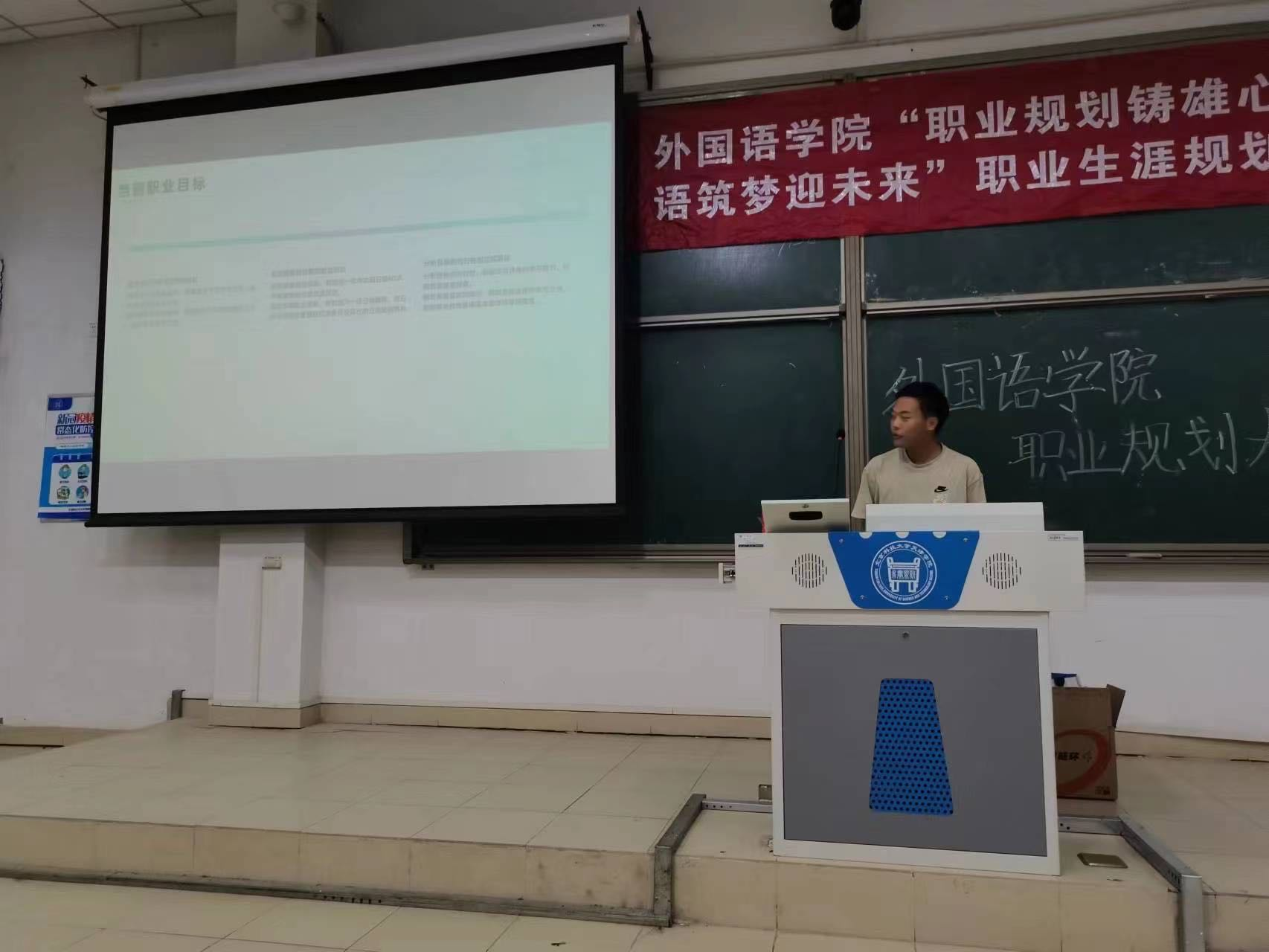 本次大賽分為班級(jí)賽和院賽復(fù)審、決賽三個(gè)階段。選手們通過提交職業(yè)生涯發(fā)展報(bào)告、個(gè)人陳述視頻、生涯展示PPT,結(jié)合職業(yè)目標(biāo)、行動(dòng)成果、目標(biāo)契合度等方面對(duì)生涯報(bào)告進(jìn)行陳述和展示,通過分析市場(chǎng)需求和個(gè)人發(fā)展前景,制定了切實(shí)可行的職業(yè)規(guī)劃。最終,2023年11月8日在9教104舉辦本次大賽院賽決賽,外國(guó)語學(xué)院黨總支書記吳思、日語教研室主任孔令蕾老師以及各年級(jí)輔導(dǎo)員出席并擔(dān)任評(píng)委。