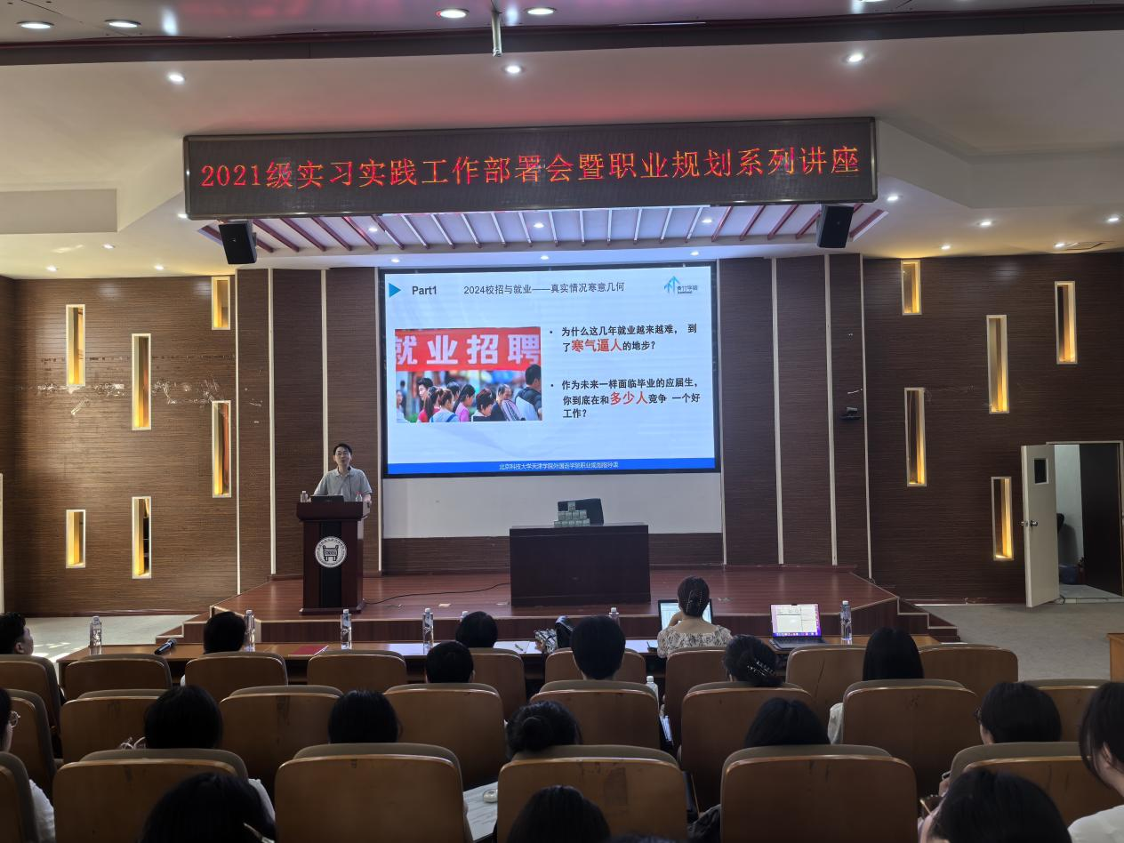 6月25日上午,外國語學院2021級英語、日語、朝鮮語三個專業的學生在理工館學術報告廳參加了“2021級實習實踐工作部署會暨職業規劃系列講座”。