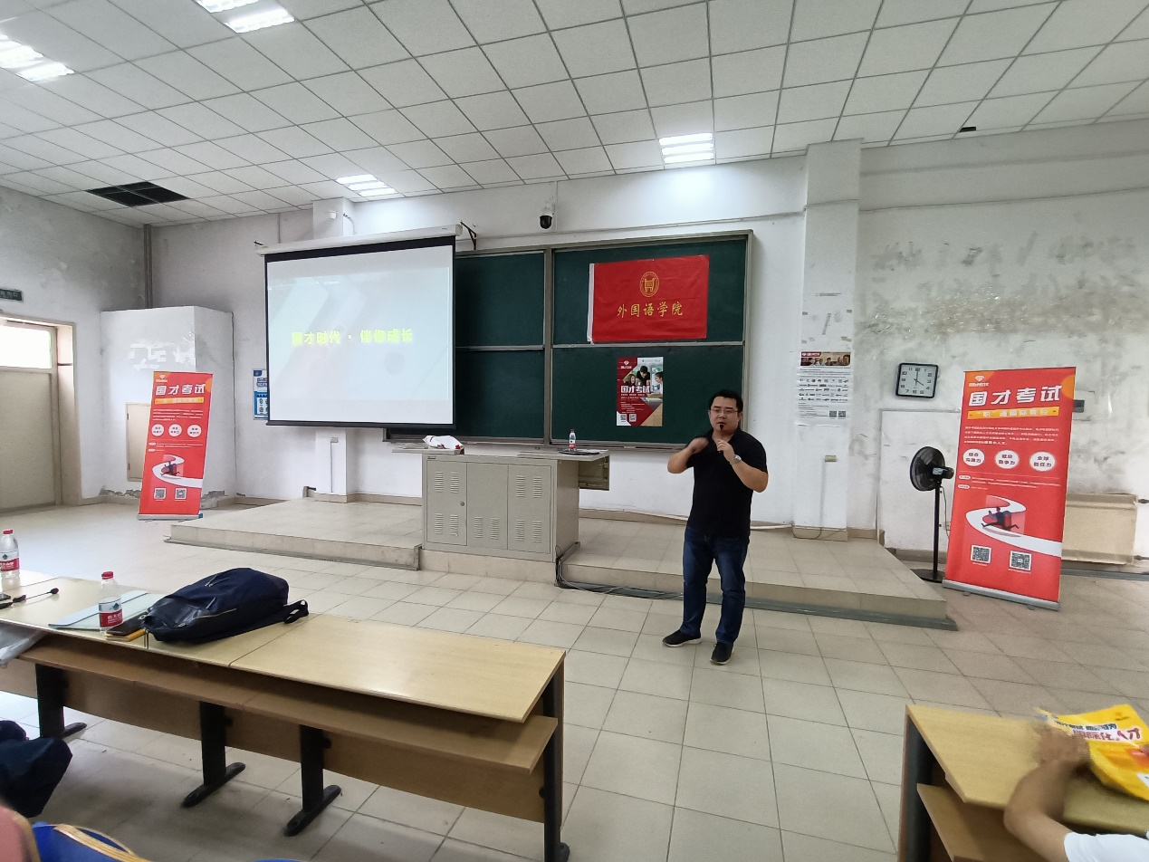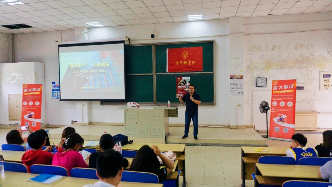 為推動(dòng)外國(guó)語(yǔ)學(xué)院學(xué)風(fēng)建設(shè),為學(xué)校營(yíng)造良好的英語(yǔ)學(xué)習(xí)氛圍。外國(guó)語(yǔ)學(xué)院于9月15日下午15:00,在8教108舉辦了“外研社·國(guó)際人才英語(yǔ)考試”專題講座。此次講座我們特邀到了國(guó)才考試專題講師張龍主講。外國(guó)語(yǔ)學(xué)院教師,19、20級(jí)全體在校生以及我校想要了解國(guó)才考試的學(xué)生共計(jì)500余人參加了此次講座。
