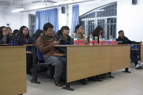 自由提問環(huán)節(jié),同學(xué)們就考試流程,備考階段所需的準(zhǔn)備工作、考試做題具體技巧等方面提出自己的疑問。各位學(xué)姐學(xué)長(zhǎng)們也做了詳細(xì)的講解和說明。同時(shí)他們也鼓勵(lì)同學(xué)們?cè)趥淇紩r(shí)一定要放平心態(tài),充滿信心,合理的安排時(shí)間并預(yù)祝大家在專四考試中取得優(yōu)異成績(jī)。