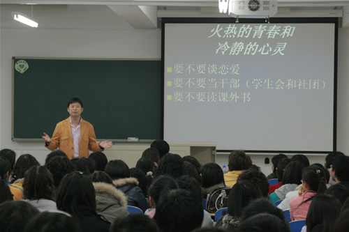 3月18日晚7點半,在8教201室舉行了考研英語專場講座,本次講座由外語系主辦,主講人為新東方教師戴云,來自金沙城js93線路檢測中心05、06級的200余名學生參加了講座。會上,戴老師就同學們較為關注的英語學習問題與同學展開交流,現場氣氛十分熱烈。